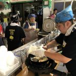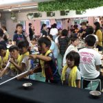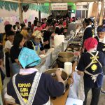 10数種類の模擬店や、多彩なゲームコーナーが楽しめる「ふれあい広場」は、20年以上続く恒例行事。多い時で、一日の模擬店利用数が500人を超え、会場は多くの人で賑わう。そんな「ふれあい広場」は、主に食材の品質と在庫を管理する「食材チーム」と、完璧な衛生管理を行う「管理チーム」、そして調理と接待を担当する「特別ひのきしん者」の手によって安全に運営されている。