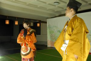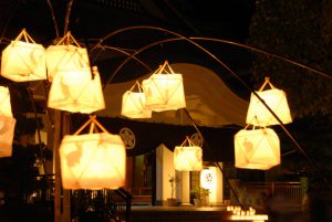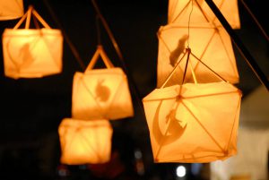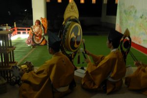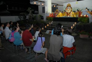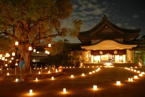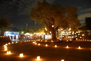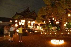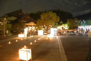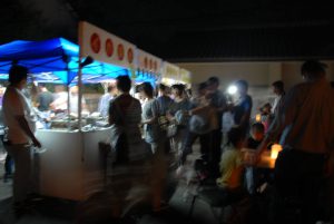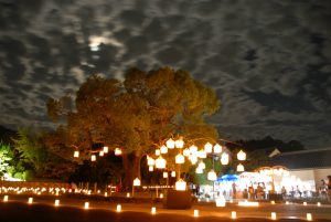 大教会では「このイベントを盛り上げるお手伝いをさせていただきたい」との思いから、これまでライトアップや雅楽の演奏を披露してきた。今年も、新たに行燈を作製し、神苑の各所に設置。2日間にわたって模擬店を出店したほか、信者会館玄関前を舞台に雅楽を披露した。