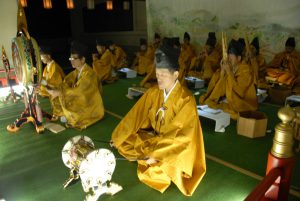 春と秋の年に2回開催されている「おつとめ勉強会」。今回も、本部員で天理教教会本部内統領の宮森与一郎先生を講師に、お手直しをさせていただきました。