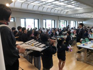 「お祝い」の席は、アルバトロス鼓笛隊のオープニングで幕開け。婦人会女子青年部によるハンドベルが披露されたほか、オペラ歌手の小西雅子さん(福門分教会所属)もお祝いに駆け付け、美しい歌声でお祝いの席に華を添えてくださいました。