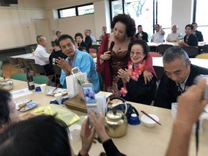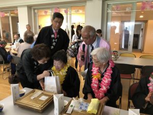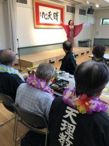 当日は、老若男女、家族、親子連れの姿が神殿にあふれ、賑やかに9月の月次祭が勤められました。そして、おつとめ後には「敬老のお祝い」が開催されたのです。