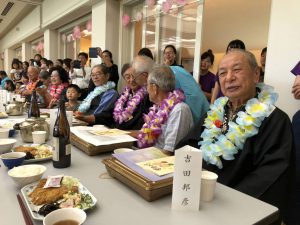「敬老のお祝い」は、今年傘寿を迎える80歳、米寿を迎える88歳、そして88歳以上の方が対象。そのほか、当日参拝された81歳から87歳の方も、お祝いの席に座っていただきました。