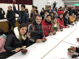 右の二人は修養科生の井手さん(肥里分教会/写真=右から2番目)と森川さん(西北分教会/写真=右)。